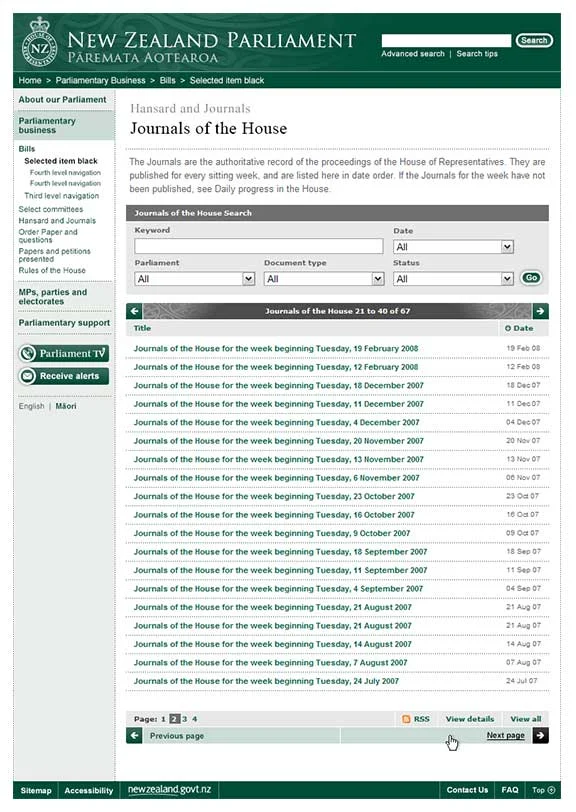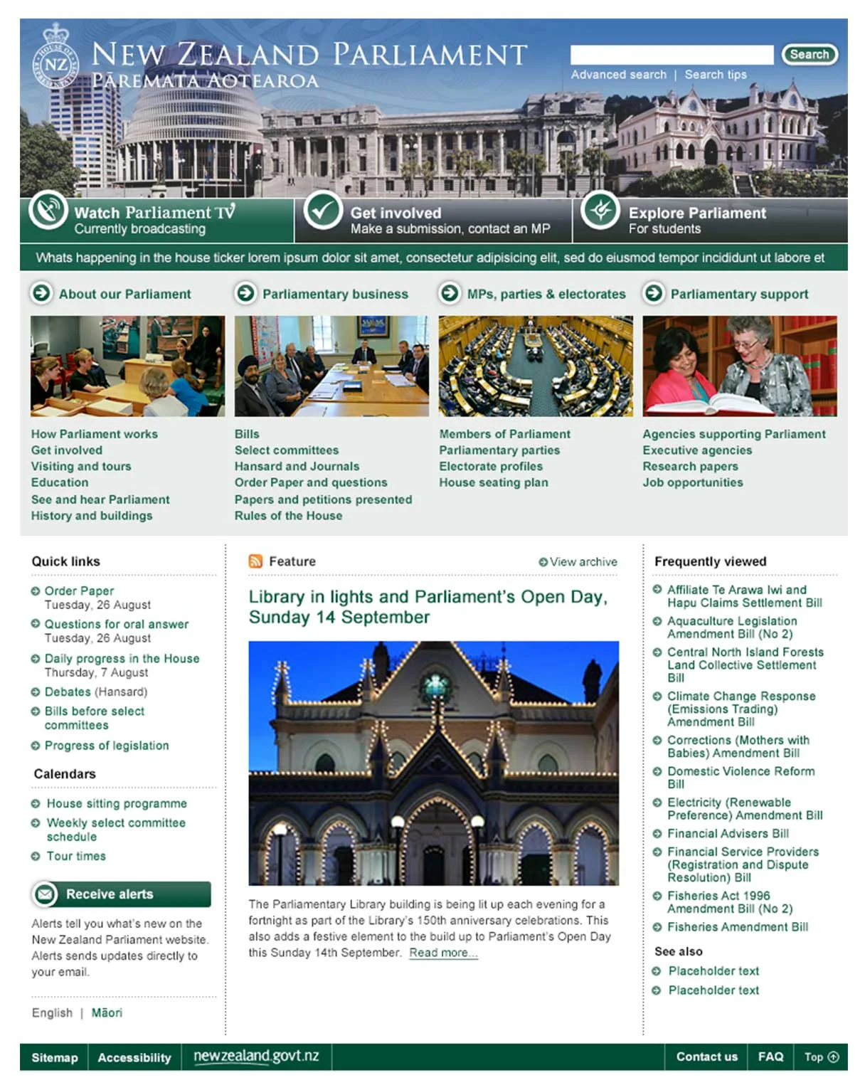 In my previous role as an Art Director at Terabyte, I worked on an extensive range of projects for NZ Parliament encompassing their website, intranet, re-branding and an array of stationery and communications material. After starting Greenwire in '08 I continued to work with Terabyte on projects for NZP such as live streaming of Parliament TV.
