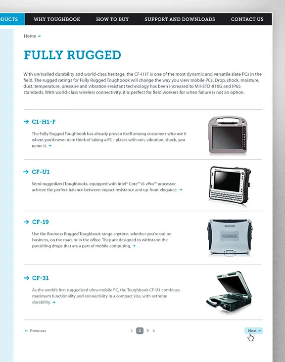 After the success of the Comworth website I was asked to redevelop the Panasonic Toughbook site. I worked closely with my client to produce a crisp rugged presence worthy of these amazingly robust laptops.